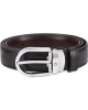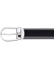 Fibbia ad ardiglione a ferro di cavallo finitura palladio lucido con marchio Montblanc inciso sui lati ed emblema Montblanc. Cinghia regolabile in pelle nera/marrone reversibile, 3 cm x 120 cm. Raffinata e discreta, adatta a qualsiasi look.