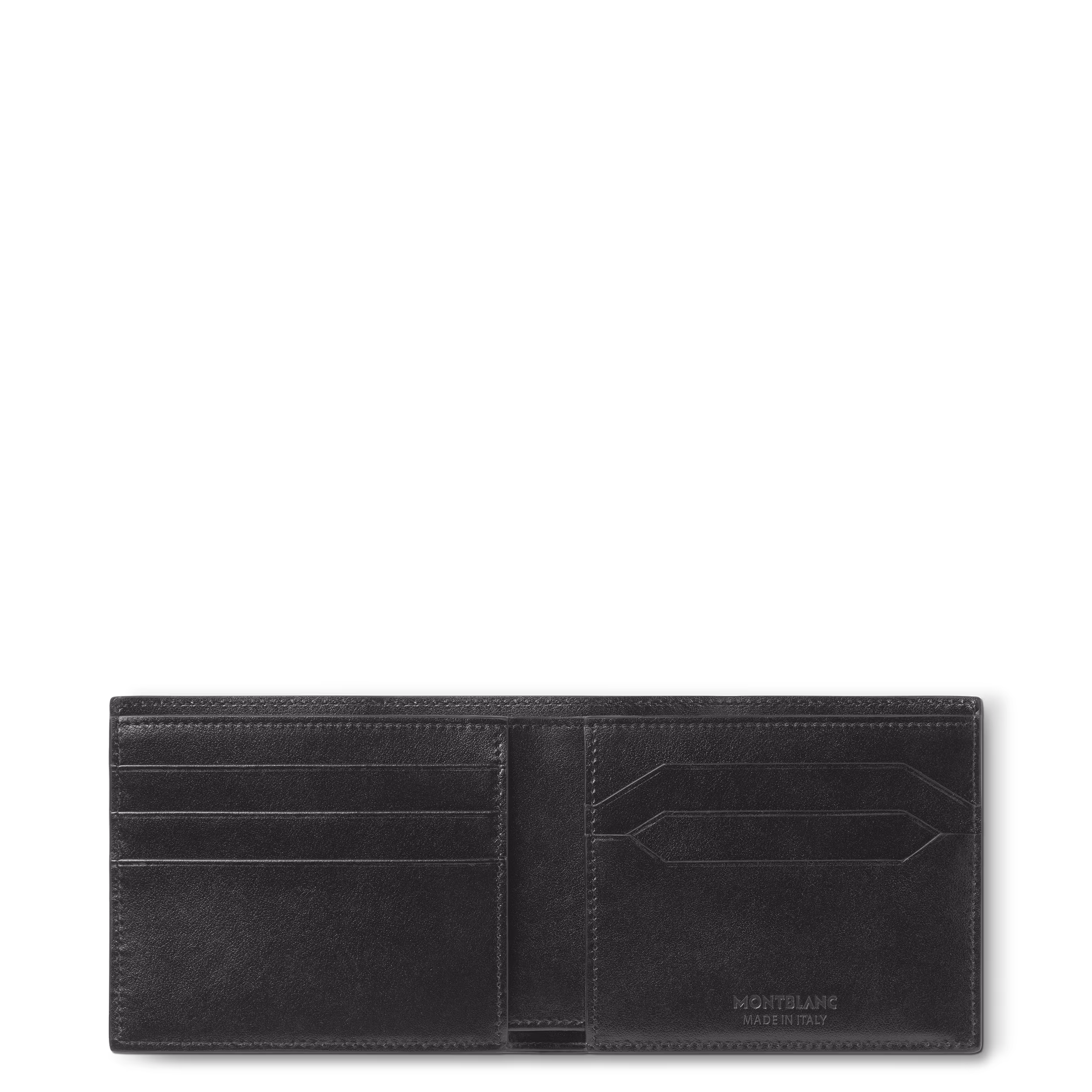 Sottile ed elegante, il nostro classico portafoglio pieghevole Meisterstück a 6 scomparti è un compagno raffinato per tutti i giorni. Pensato per contenere tutto l’essenziale, il portafoglio offre sei aperture per carte di credito, due scomparti per banconote e due tasche extra per ricevute. Realizzato in elegante pelle nera e foderato in tessuto nero, è completato dall’emblema Montblanc.