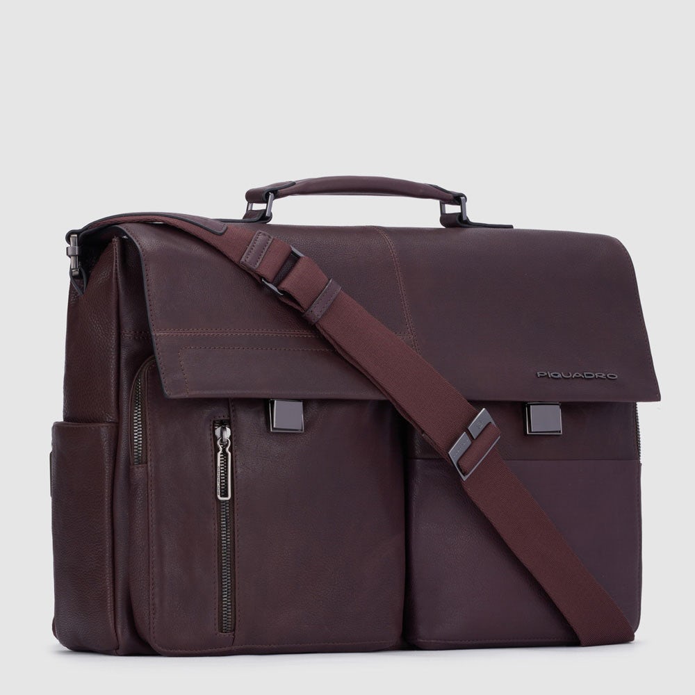 Piquadro – Cartella con patta due chiusure in pelle
