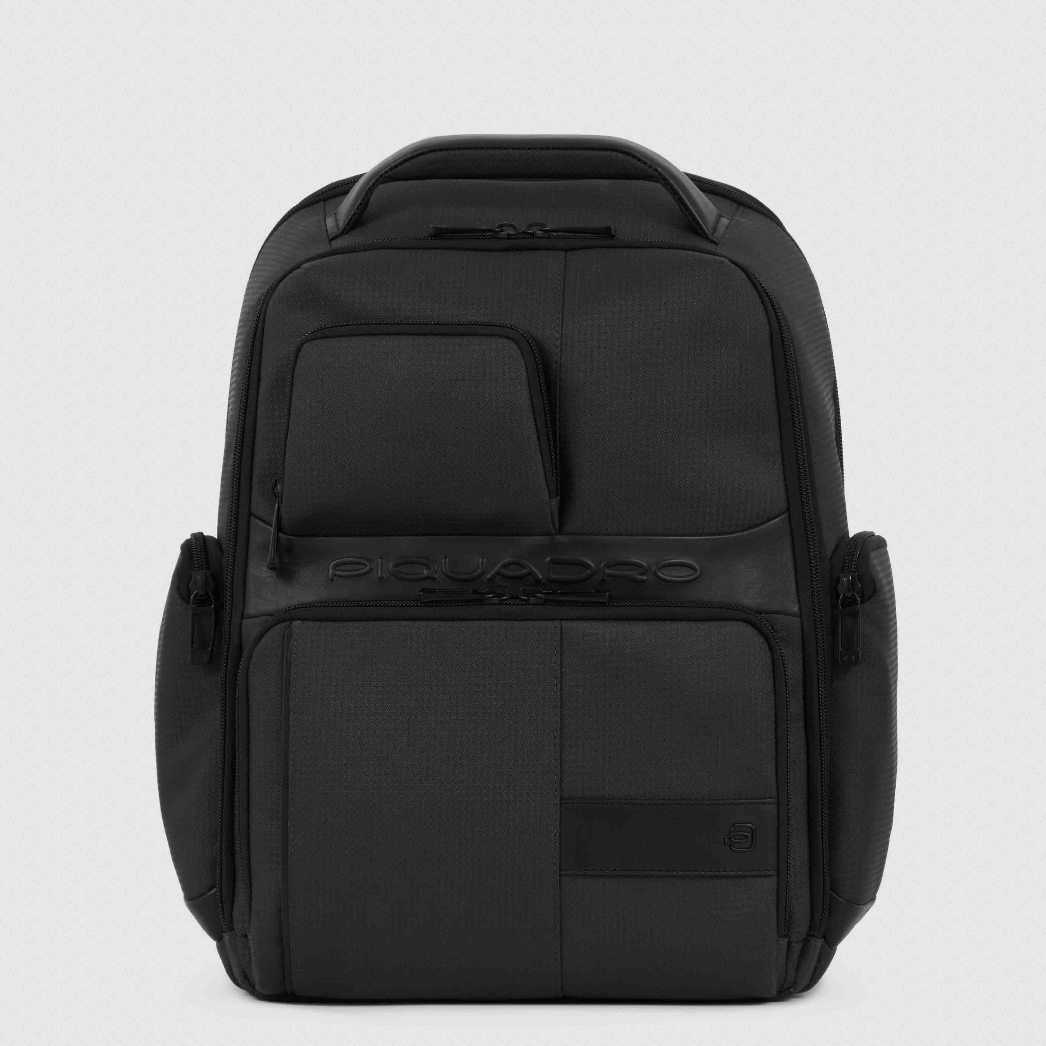 Zaino realizzato in tessuto riciclato con scomparto porta Pc 15,6″. Doppio scomparto chiuso con zip. Protezioni antiurto e anti frode RFID. Tasca porta ombrello. Sistema di aggancio al trolley con cordella. Sistema dorsale a contatto con il corpo, imbottito e traspirante. Spallacci regolabili